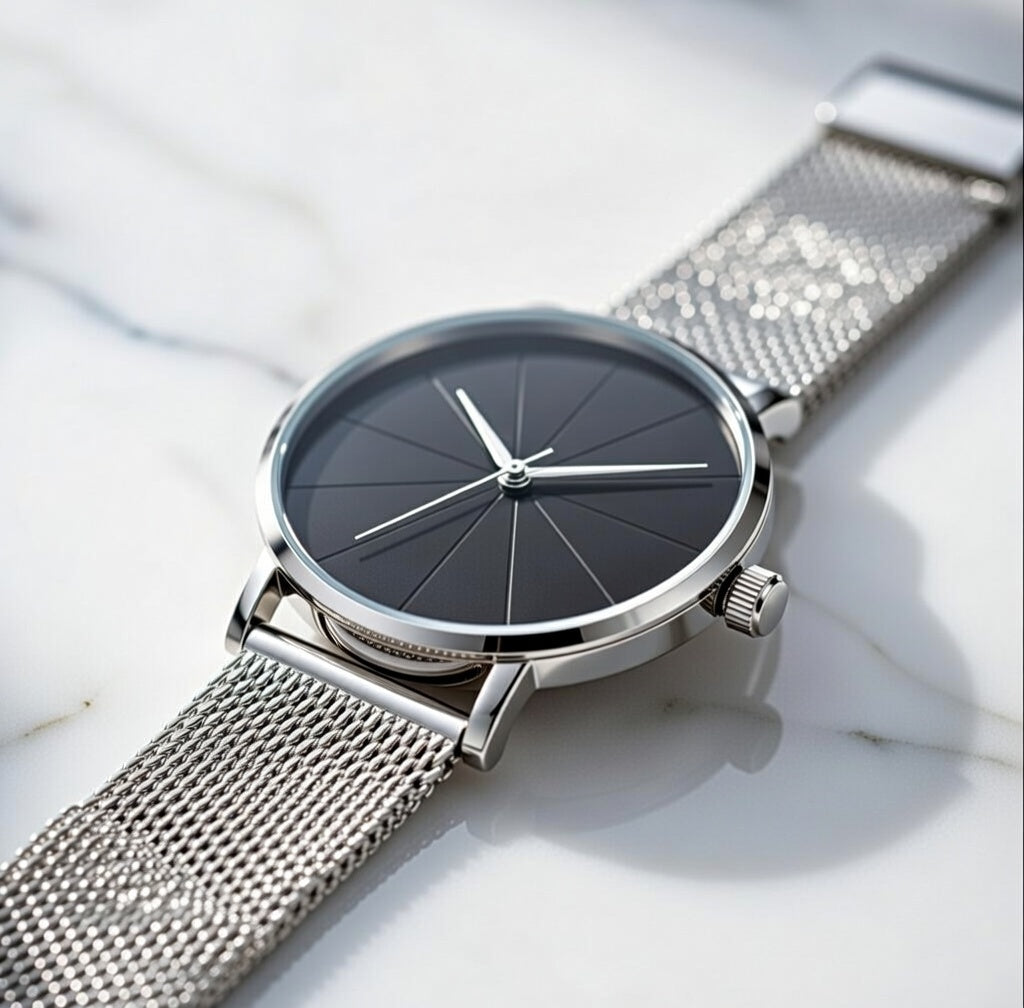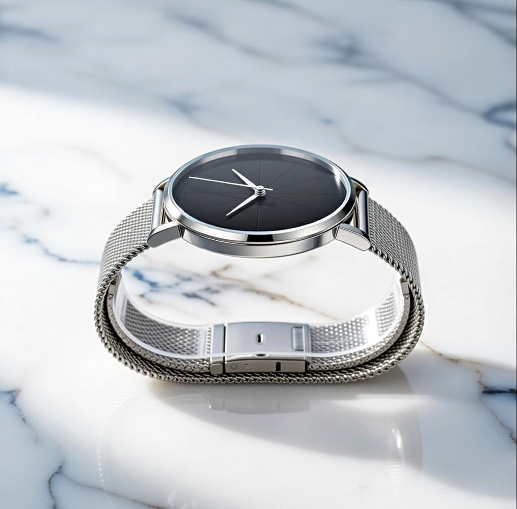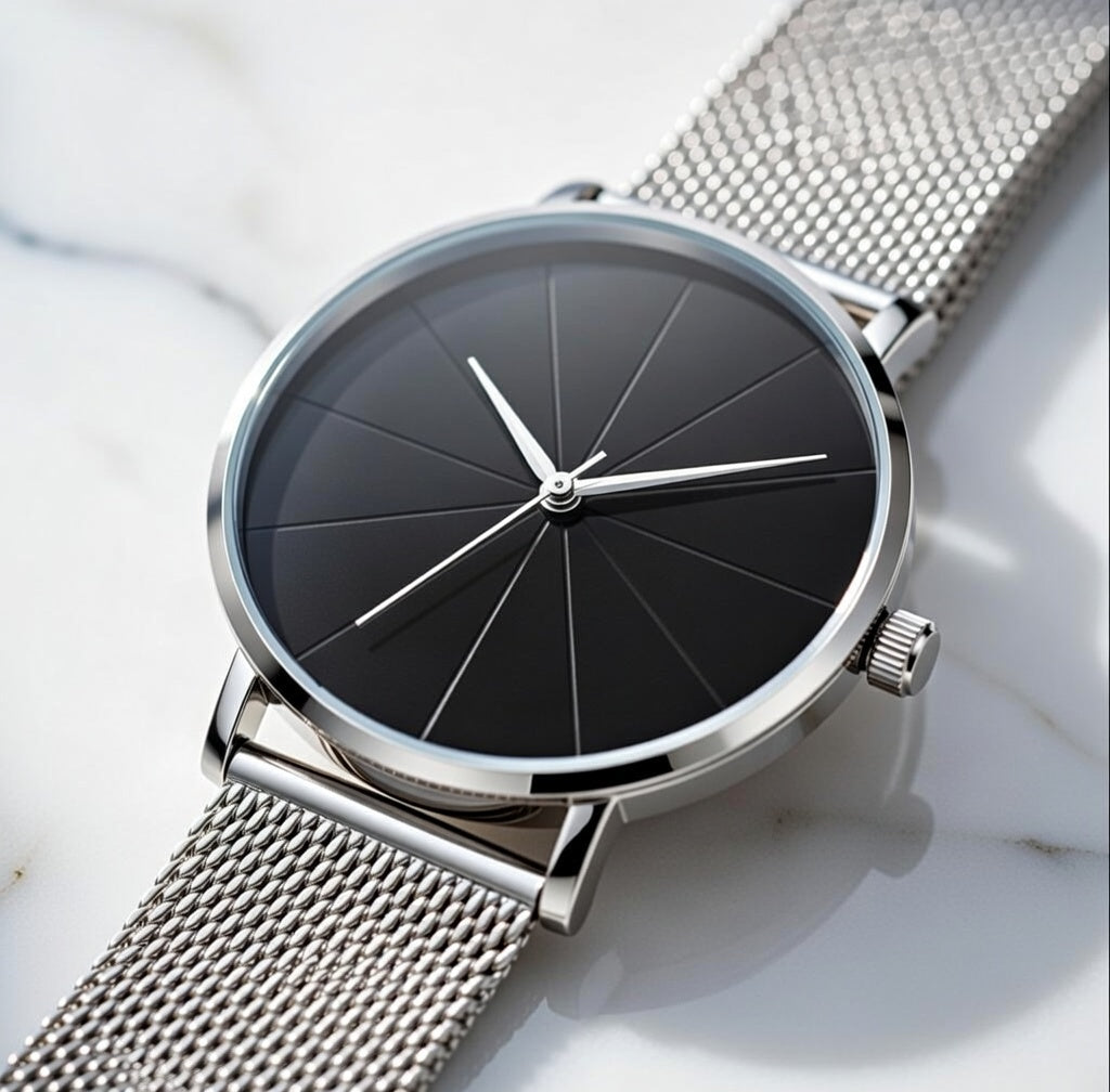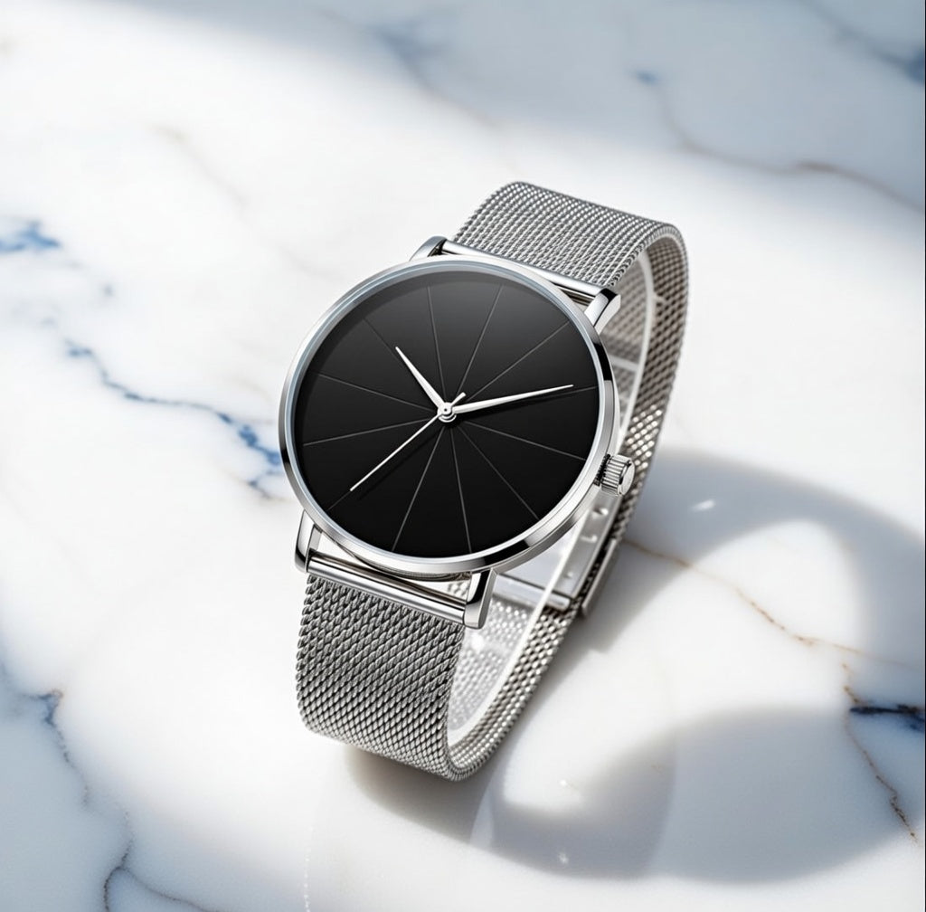 Refined simplicity defines the Ylontis Nocturne. Designed for those who appreciate understated elegance, this timepiece features a clean black dial paired with a sleek metal mesh strap, creating a timeless and sophisticated aesthetic.