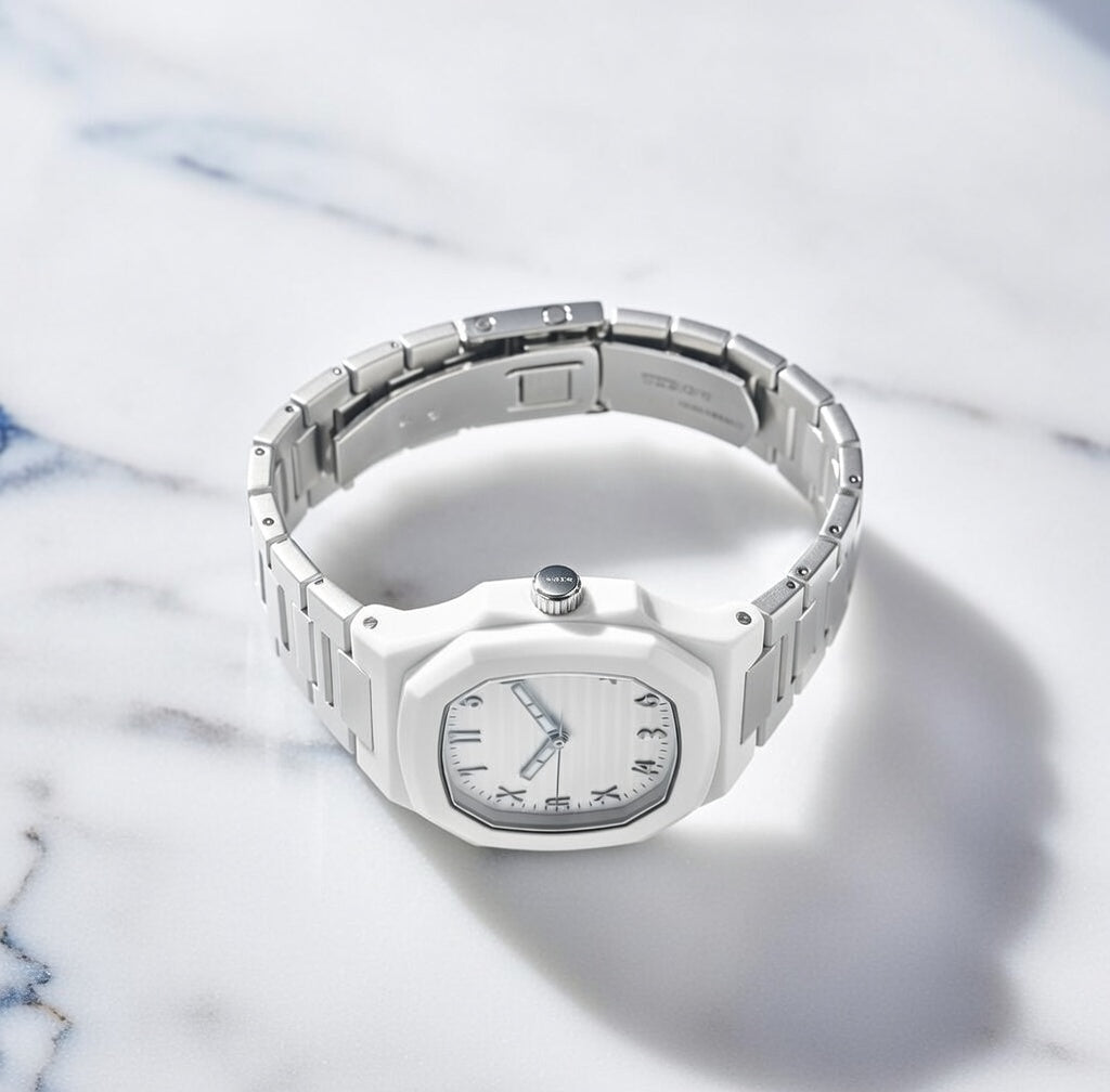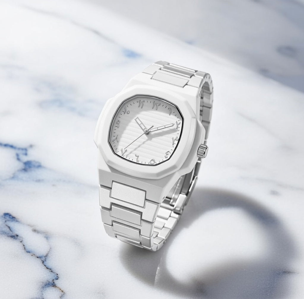 The Ylontis Vectora is defined by its bold square case and clean architectural lines. Crafted for those who appreciate contemporary design, its silver-toned finish and structured silhouette create a strong yet refined visual presence.